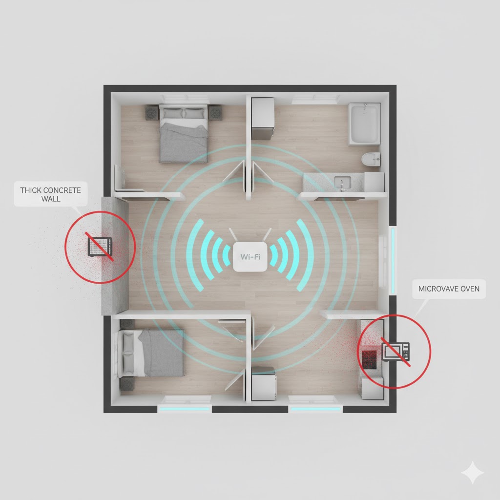 Distance Barriers: Wi-Fi 5GHz is fast but struggles to penetrate more than one or two walls; use 2.4GHz for range.