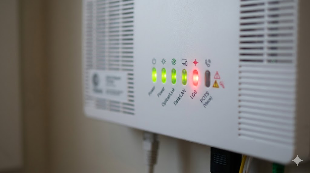 If your speed test remains low after switching to a wired connection, you should perform a physical check of your Optical Network Terminal (ONT)—the box on your wall. The lights on this unit are your first diagnostic tool.